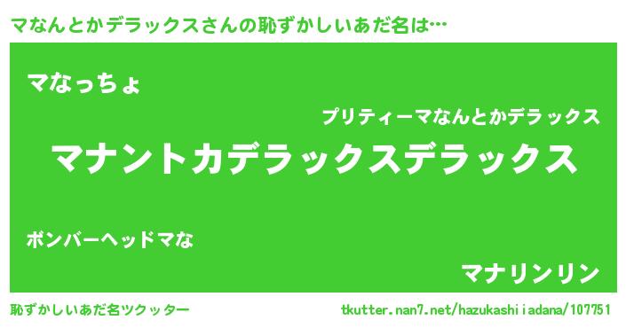 | 男性向けラノベタイトル風あだ名 | 『Re:マなんとかデラックスから始める異世界生活』 |