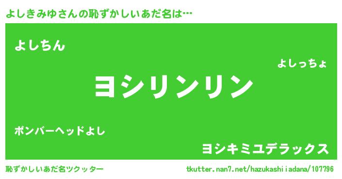 | ヘコむあだ名 | 『よしぷりん』『よしきみゆ(笑)』 |