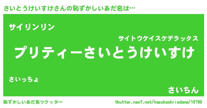 | ヒーロー風カッコイイあだ名 | 『スーパーサイトウケイスケ』 |