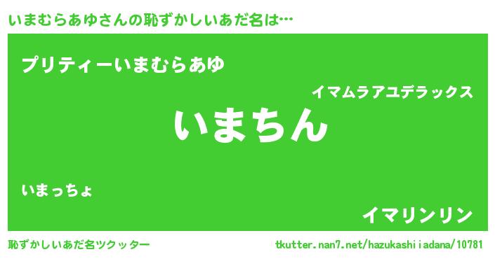 | ヘコむあだ名 | 『いまむらあゆ(震え声)』『いまもー』 |