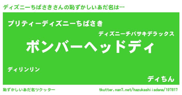 | ヘコむあだ名 | 『ディにー』『ディズニーちばさき(笑)』 |