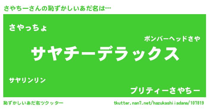 | ヒーロー風カッコイイあだ名 | 『超時空戦士サヤチー』『仮面サヤダー』 |