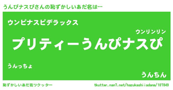 | ヘコむあだ名 | 『うんもー』『うんぴナスぴ(小並感)』 |