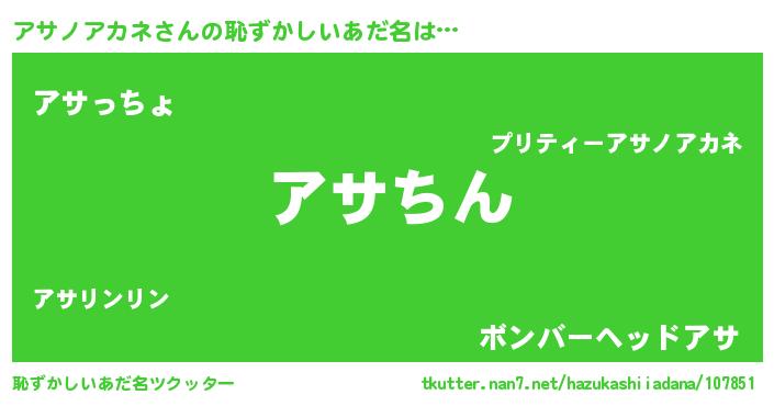 | ヒーロー風カッコイイあだ名 | 『ネオアサノアカネ』『仮面アサダー』 |