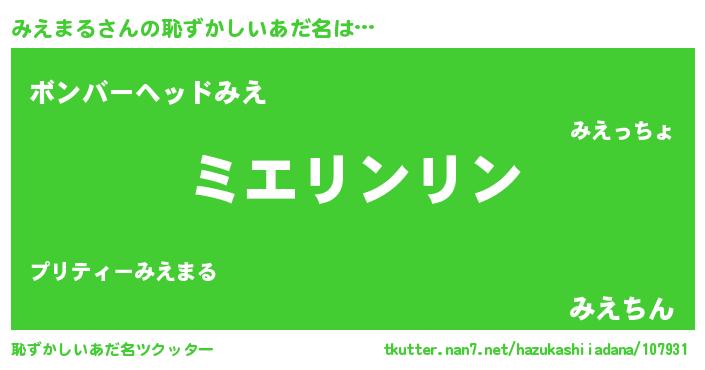 | 欧米人風あだ名 | 『トリンドルみえまる』 |