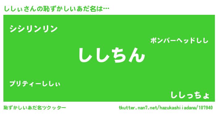 | ヘコむあだ名 | 『ししぃ(笑)』『ししを』『レバニラ』 |