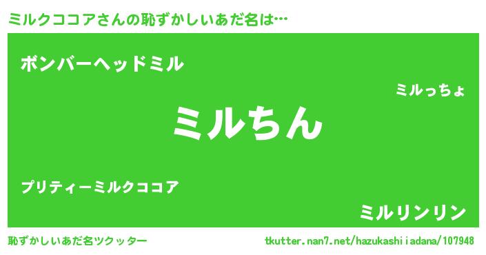 | ヘコむあだ名 | 『ミルクココア(笑)』『ミルっ子』 |