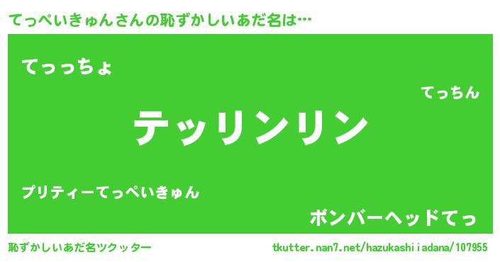 | 欧米人風あだ名 | 『ダレノガレてっぺいきゅん』 |