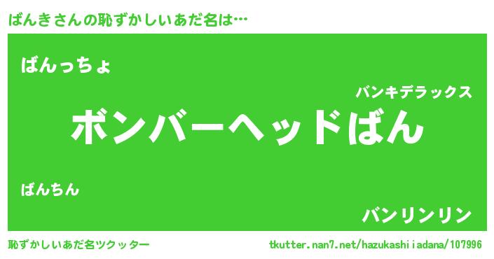 | ヒーロー風カッコイイあだ名 | 『愛の使者ばんき』『ウルトラばんきマン』 |