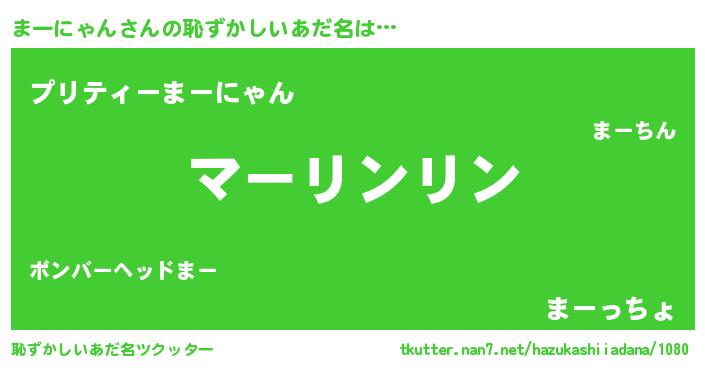 | 胡散臭い通販商品みたいなあだ名 | 『信頼と実績のサプリメント…その名も「まーにゃん」』 |