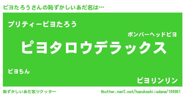 | 意味不明あだ名 | 『自称ピヨたろう』『ペロリンピヨたろう』 |