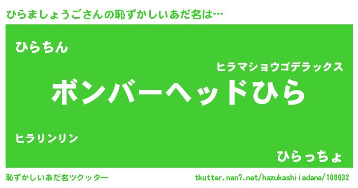 | ヘコむあだ名 | 『ひらましょうご(震え声)』『牛乳』 |