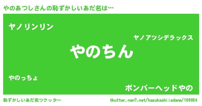 | ヘコむあだ名 | 『やのあつし(笑)』『やのぷりん』 |