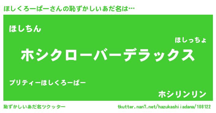 | 意味不明あだ名 | 『自称ほしくろーばー』 |