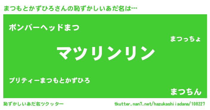 | ヘコむあだ名 | 『まつ太郎』『まつもとかずひろ(爆)』 |