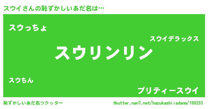 | 意味不明あだ名 | 『とにかく怪しいスウイ』『自称スウイ』 |