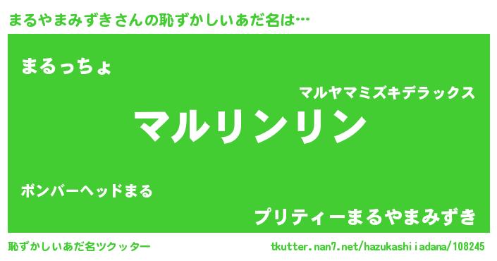 | 男性向けラノベタイトル風あだ名 | 『まるやまみずきの嫁は女の子じゃないと思った?』 |