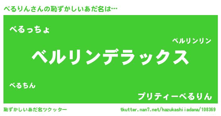 | 男性向けラノベタイトル風あだ名 | 『緋弾のベルリン』『魔弾の王とべるりん』 |