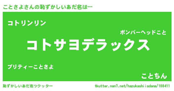 | ヘコむあだ名 | 『ことぷりん』『ことさよ(爆)』 |