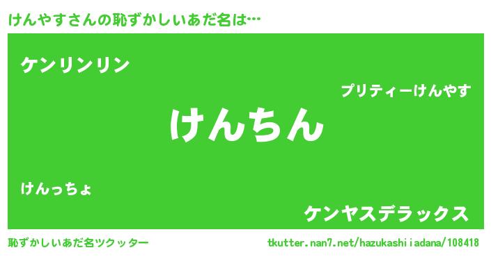 | 意味不明あだ名 | 『永久保存けんやす』『自称けんやす』 |