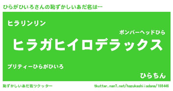 | 男性向けラノベタイトル風あだ名 | 『Re:ひらがひいろから始める異世界生活』 |
