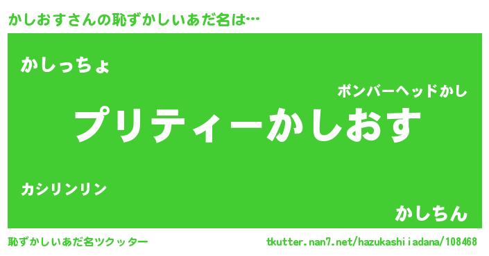 | 胡散臭い通販商品みたいなあだ名 | 『億万長者になれる霊験あらたかなお札…その名も「かしおす」』 |
