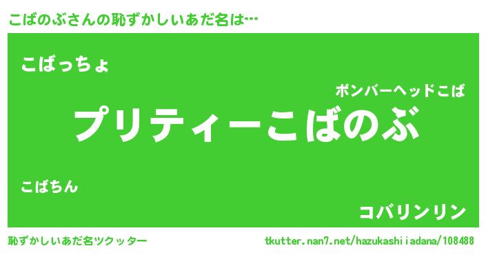 | ファンタジー風あだ名 | 『コバフェル』『エターナルコバノブー』 |