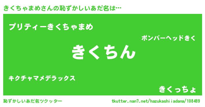 | ヘコむあだ名 | 『きくちゃまめ(苦笑)』『きくもー』 |