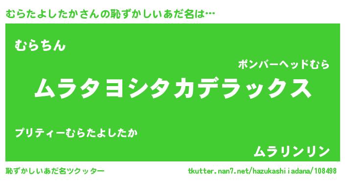 | ヘコむあだ名 | 『むらたよしたか(笑)』『むらっ子』 |