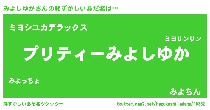 | ヘコむあだ名 | 『みよにー』『みよしゆか(笑)』 |