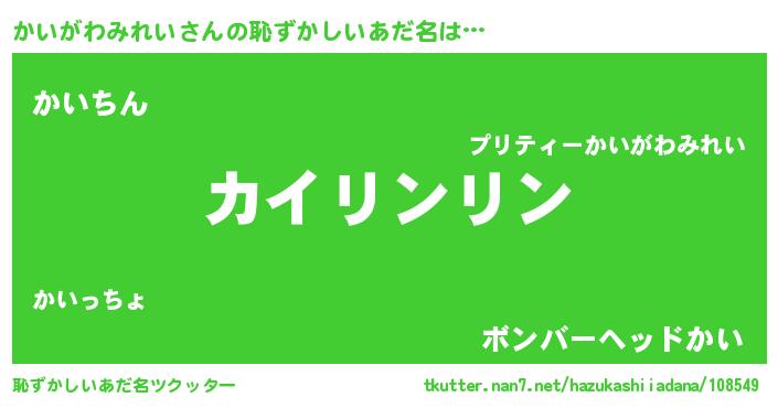 | 意味不明あだ名 | 『とにかく怪しいかいがわみれい』 |