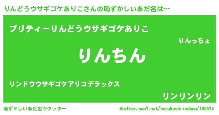 | 女子向けラノベタイトル風あだ名 | 『異世界で失敗しない100のりんどうウサギゴケありこ』 |