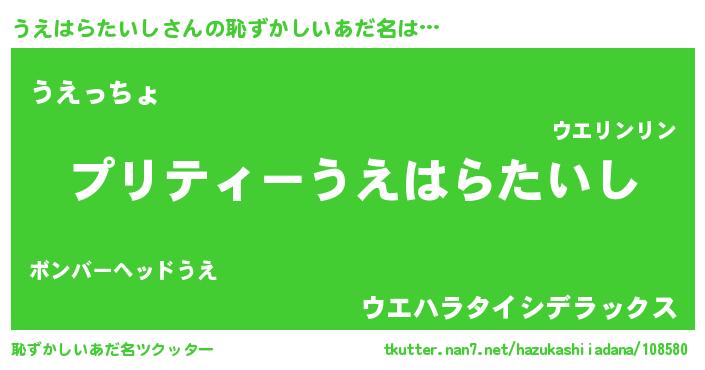 | 胡散臭い通販商品みたいなあだ名 | 『億万長者になれる霊験あらたかなお札…その名も「うえはらたいし」』 |
