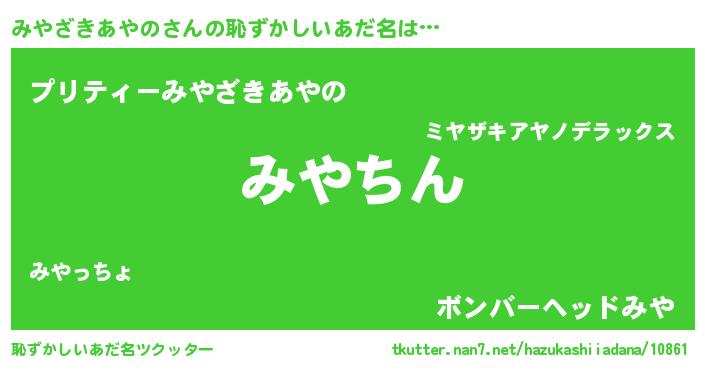 | ヘコむあだ名 | 『みやざきあやの(笑)』『みやっふぃ~』 |