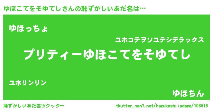 | ヘコむあだ名 | 『ゆほにー』『つくし』『ゆほっぺ』 |
