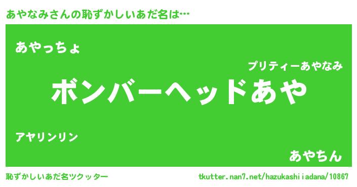 | 意味不明あだ名 | 『住所不定無職あやなみ(89歳)』 |