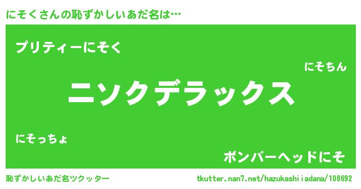 | ヘコむあだ名 | 『にそにー』『にそく(遠い目)』 |