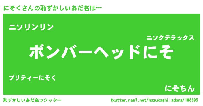 | ヘコむあだ名 | 『にそを』『にそく(苦笑)』『つくし』 |