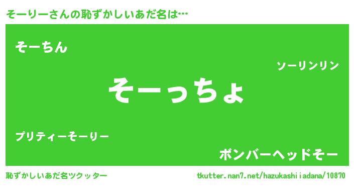 | ヒーロー風カッコイイあだ名 | 『ウルトラそーりーマン』『ネオソーリー』 |