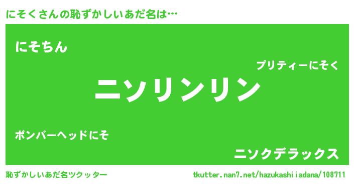 | ヒーロー風カッコイイあだ名 | 『炎刃騎士ニソ』『仮面ニソダー』 |