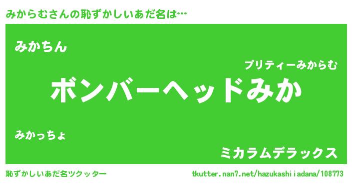 | ヘコむあだ名 | 『みからむ(笑)』『みかふぇ~』 |