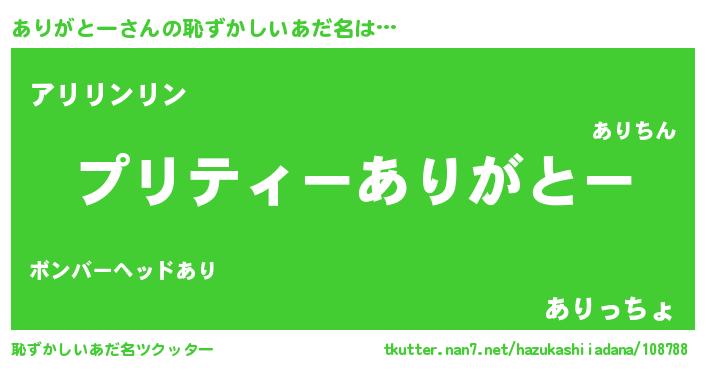 | 男性向けラノベタイトル風あだ名 | 『アリガトーアートオンライン』 |