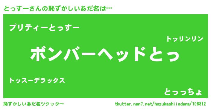 | ヘコむあだ名 | 『とっにゅー』『なまこ酢』『とっお』 |