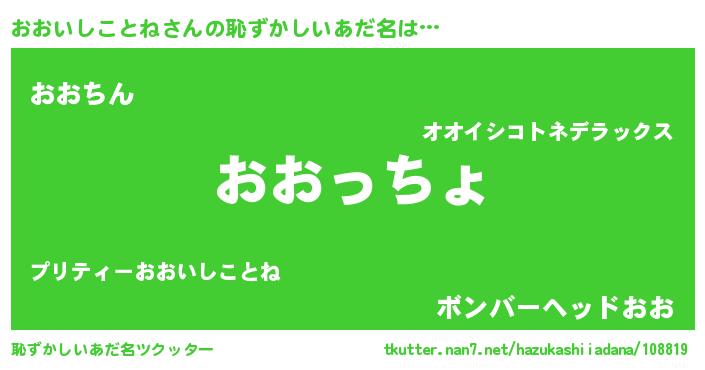| 意味不明あだ名 | 『おおいしことねフォーエバー』 |