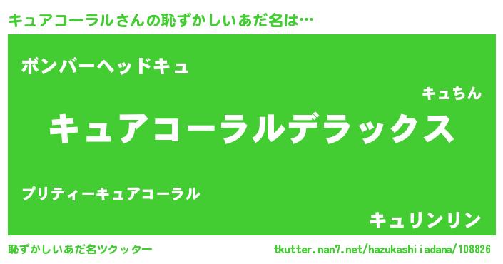 | 男性向けラノベタイトル風あだ名 | 『Re:キュアコーラルから始める異世界生活』 |