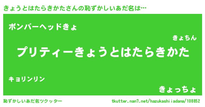 | 意味不明あだ名 | 『住所不定無職きょうとはたらきかた(62歳)』 |