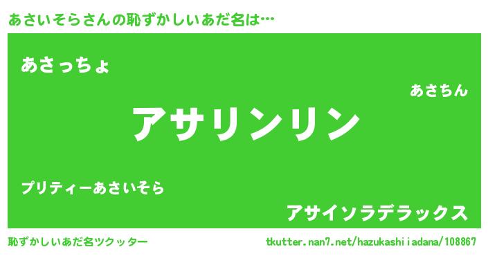 | 意味不明あだ名 | 『とにかく怪しいあさいそら』 |