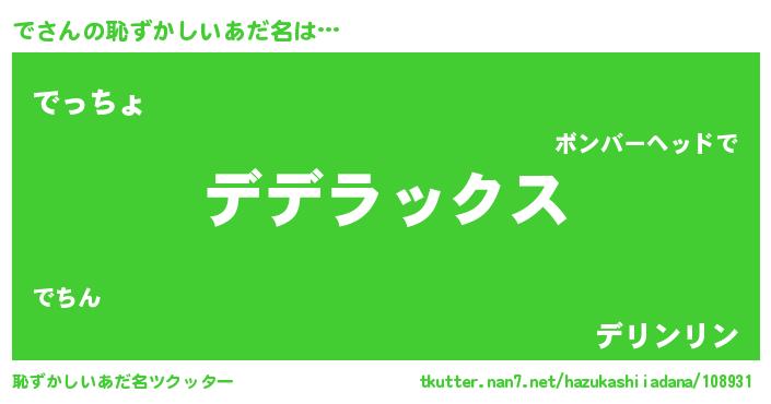 | ヒーロー風カッコイイあだ名 | 『超時空戦士デ』『ウルトラでマン』 |