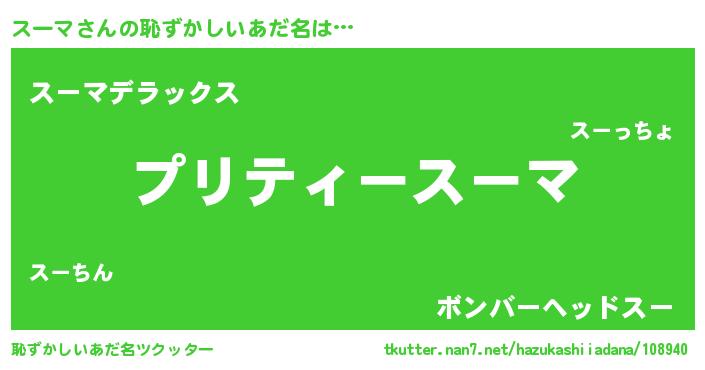 | 男性向けラノベタイトル風あだ名 | 『スーマの憂鬱』『はたらくスーマさま!』 |