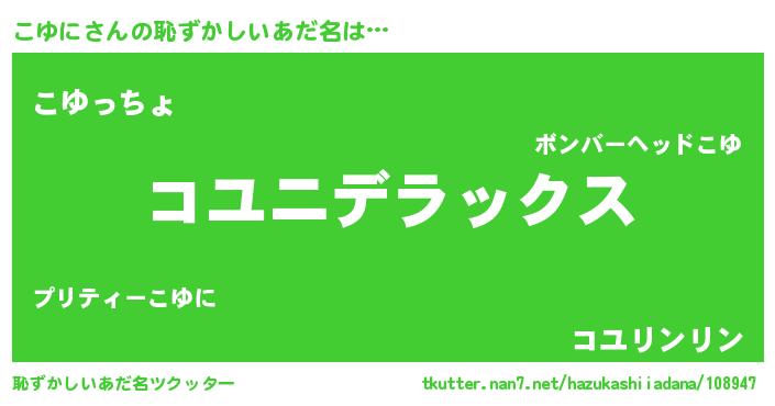 | 欧米人風あだ名 | 『ケンブリッジこゆに』『ウサインこゆに』 |